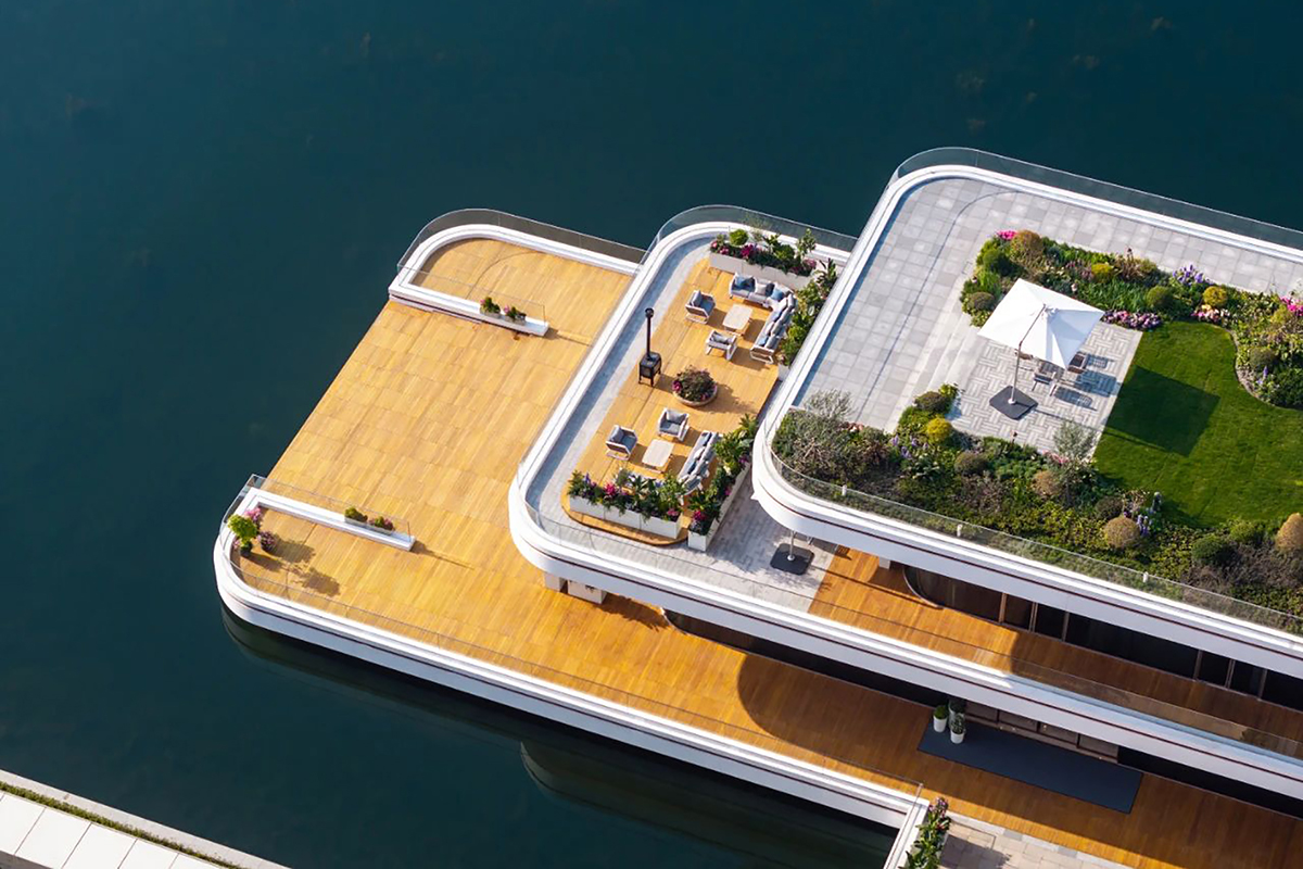 Questo approccio si riflette anche nelle scelte d’arredo. Per gli spazi outdoor è stata selezionata la collezione Wing di Higold, brand di riferimento nell’arredamento da esterno di alta gamma. Le linee leggere e aerodinamiche della collezione, disegnata da Pininfarina Extra, dialogano con il profilo dell’architettura, richiamando il concetto stesso di leggerezza e movimento che caratterizza l’intero progetto.